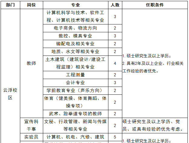 6.工作地点:我校现有广州天河、广州白云、清远(省职教城)三个校区,应聘人员需服从学校工作安排;