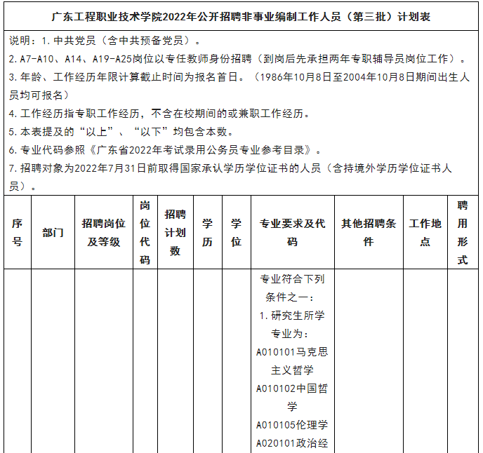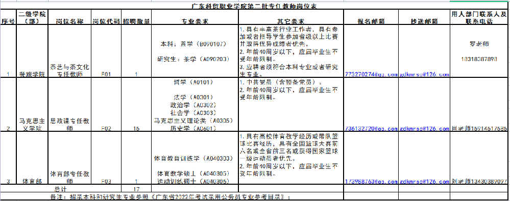8.具体岗位所需的其他条件,请见《广东科贸职业学院2022年第四批专任教师及教辅人员岗位表》(附件1)。